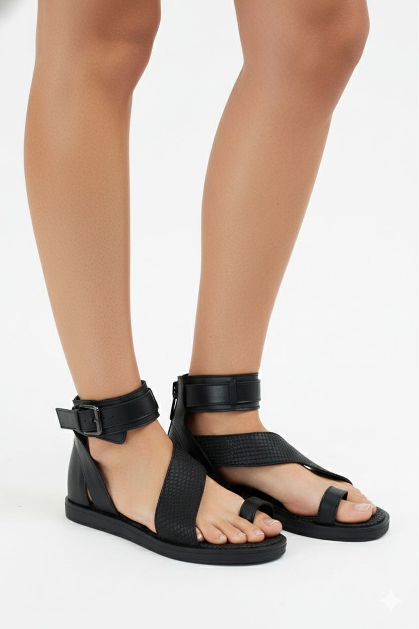Sandalia con detalle de tira en el dedo y tobillera, codiciada por su característica estética vintage.Combinala con vestidos cortos o de corte middie.