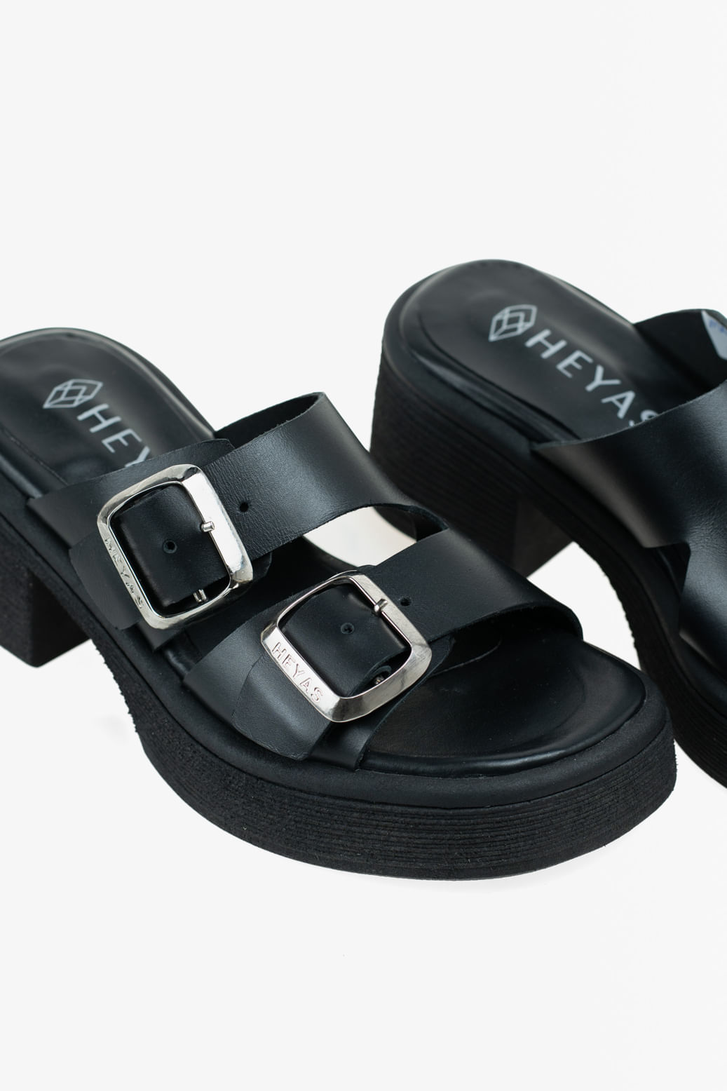 Zueco de taco y plataforma de goma que prioriza tu comodidad, permitiéndote lucir a la moda sin sacrificar el bienestar de tus pies.