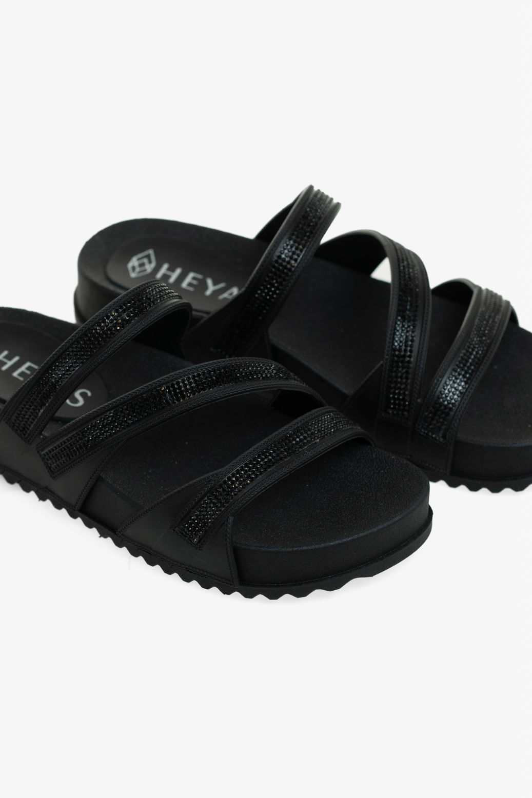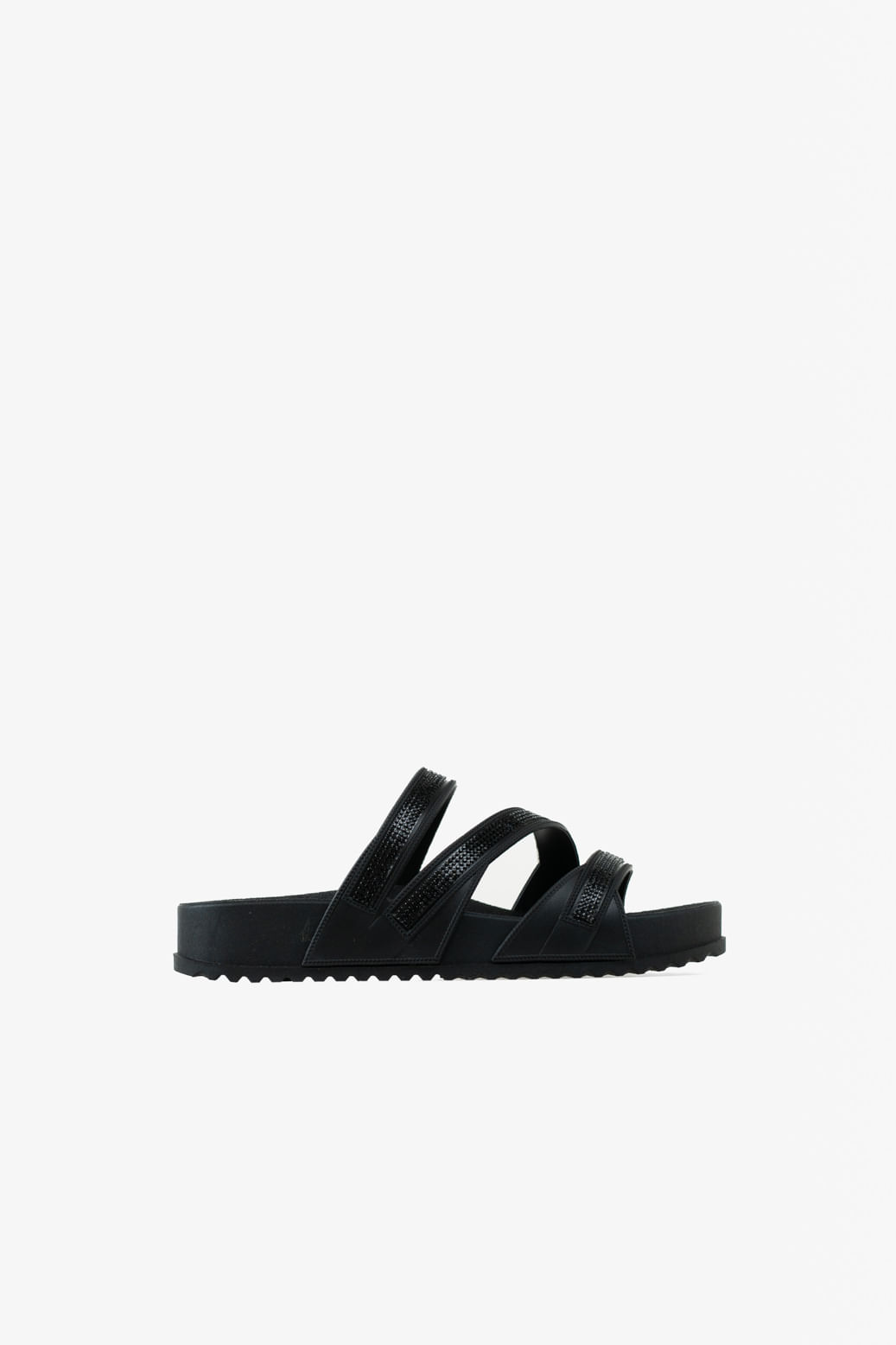 Zueco base birk de goma y tiras con brillo que suma comodidad y estética a tu look.