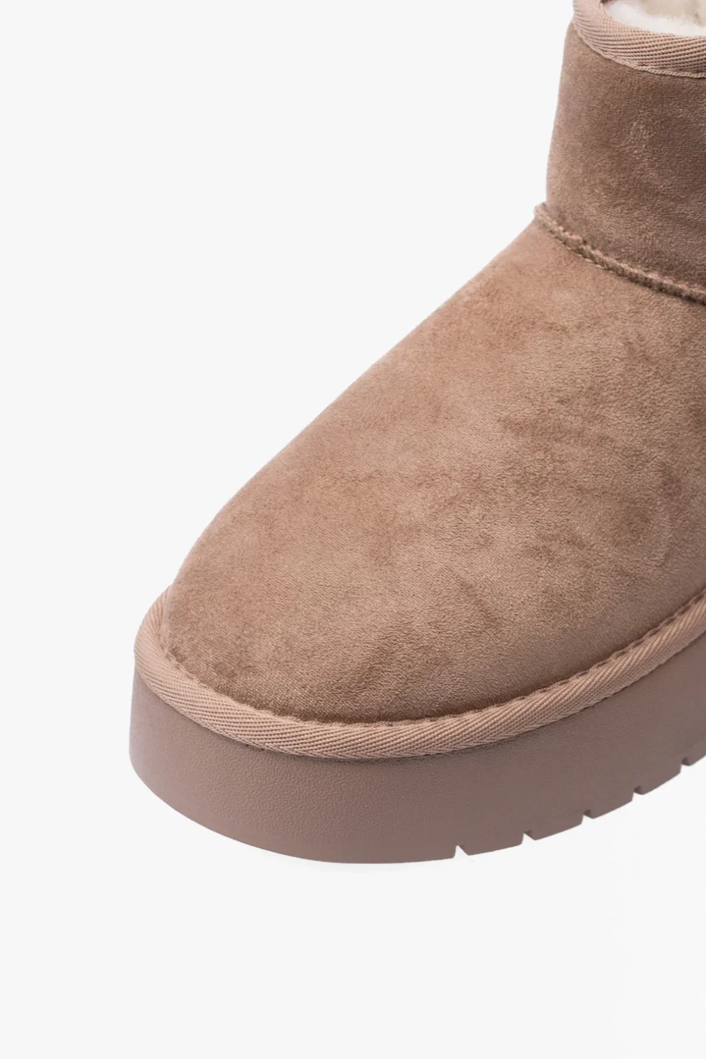 Sumá abrigo y estilo a tus looks de invierno con esta bota, ideal para el uso diario. Confeccionada en gamuza sintética de textura suave, ofrece un diseño cómodo, moderno y fácil de combinar. Podes combinarla con jeans, leggings o faldas, perfecta para looks urbanos y relajados.