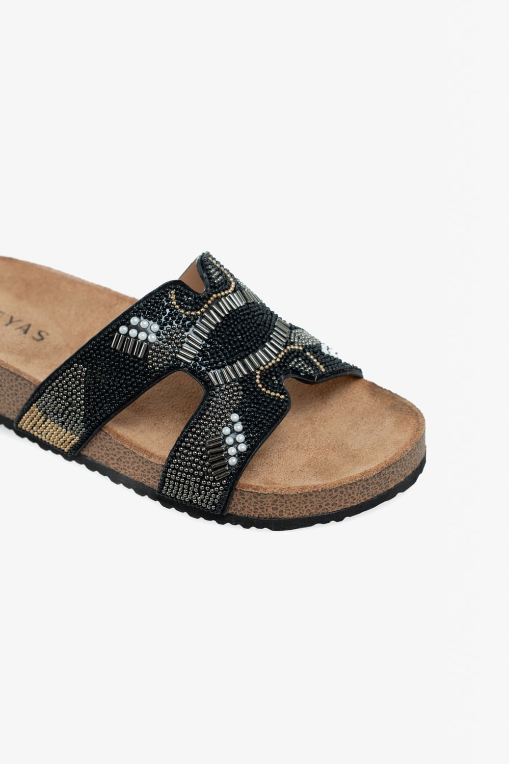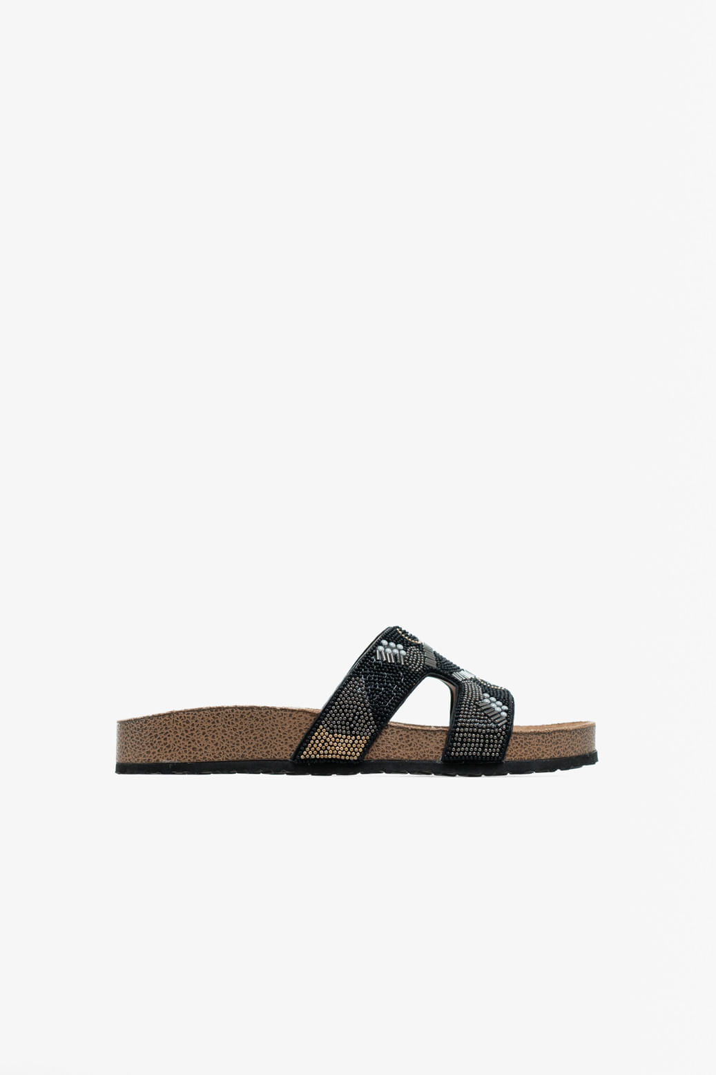 Zueco base birk con bordado de canutillos, la comodidad de su diseño y sus detalles lo convierten en tu mejor aliado para esta temporada.