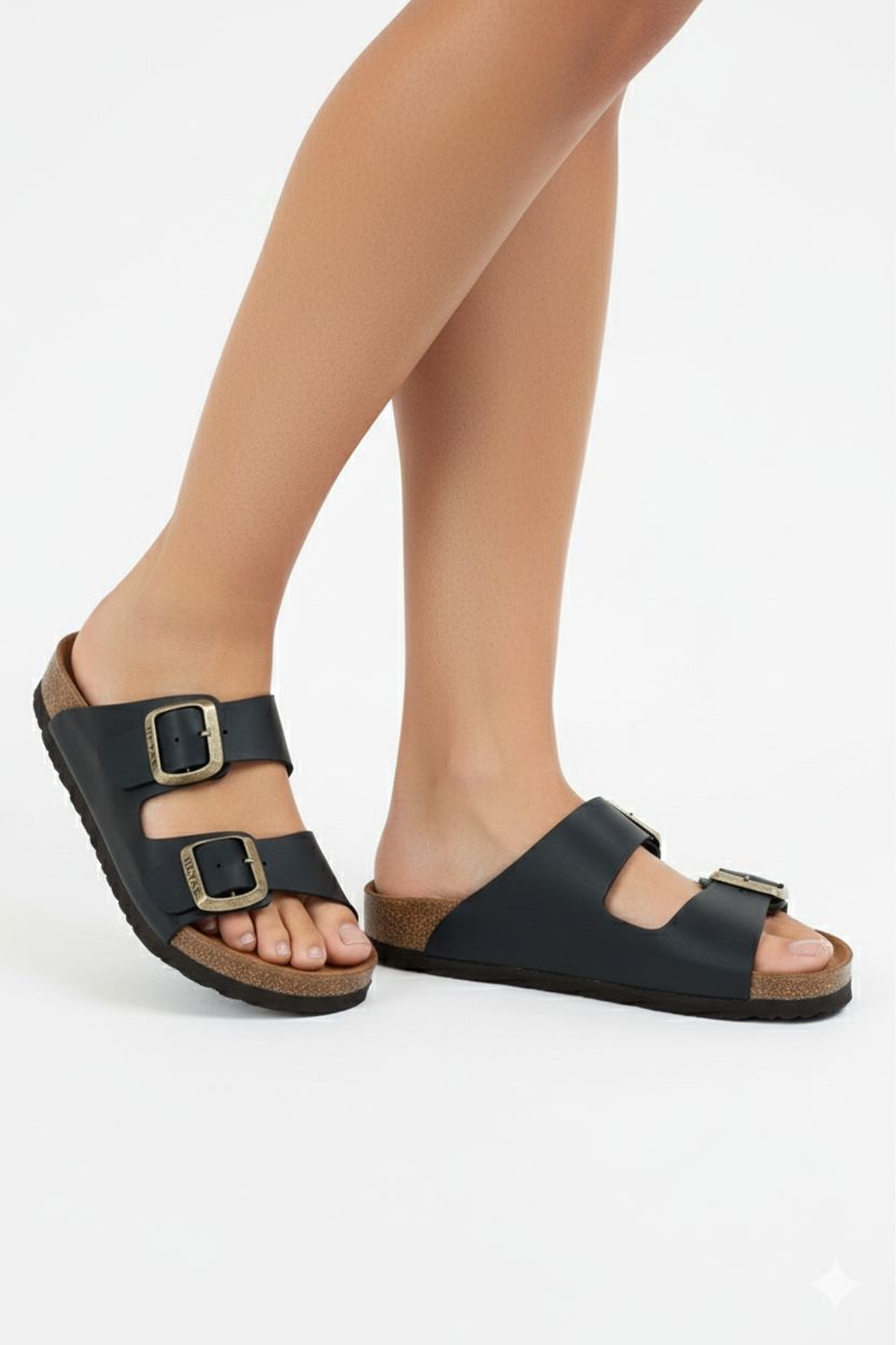 Zueco base birk con tiras ajustables, super cómodo para un look relajado y casual.La forma de la plantilla Birk permite que el peso corporal se distribuya uniformemente por todo el pie, proporcionándole un soporte óptimo.